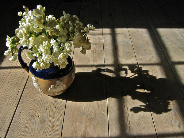 I bought these heavily scented Narcissi from Lisa Burridge at Columbia Rd, three bunches for just two pounds this week – possessing a pungent musky fragrance that fills my living room, and perfectly complementing the first flawless blue skies over the East End this weekend. They are just one of the many subtly different varieties of English Daffodils and Narcissi from Spalding Market that Lisa has on sale now, at the peak of the season for Spring flowers.